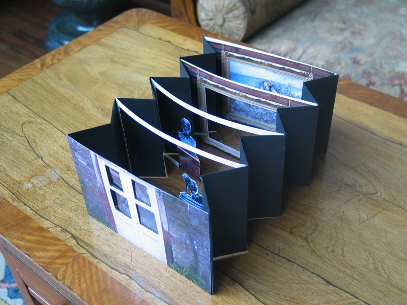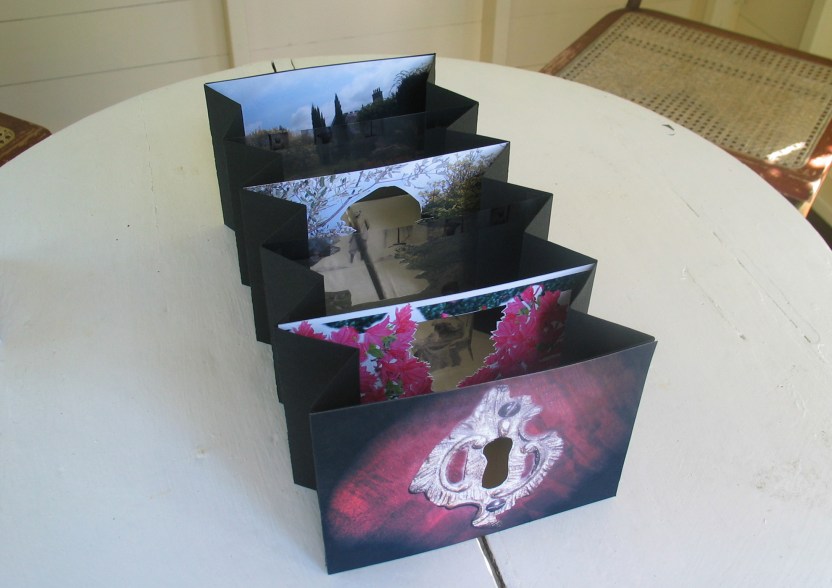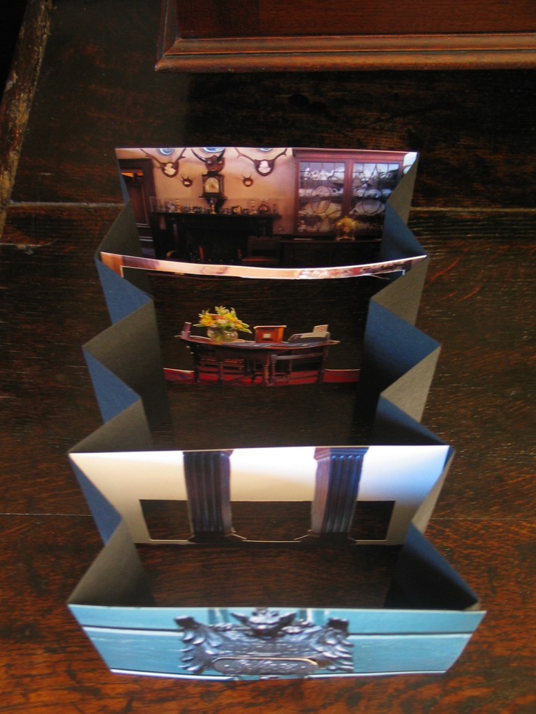 Jo worked with art students from Kirkudbright Academy to make site specific tunnel cards (these type of cards were popular at the time that the house was occupied) that reinterpreted the house and gardens. The cards were displayed throughout the property and were extremely popular with visitors.