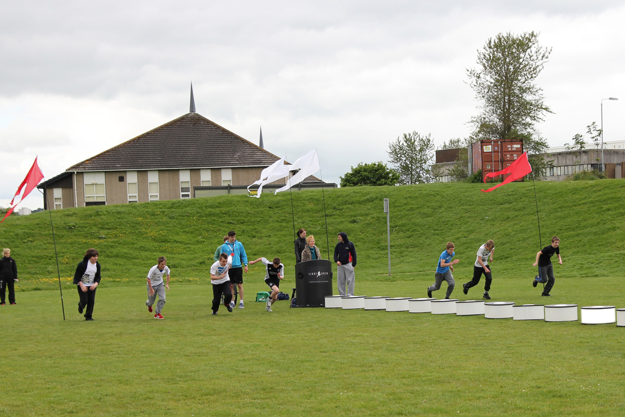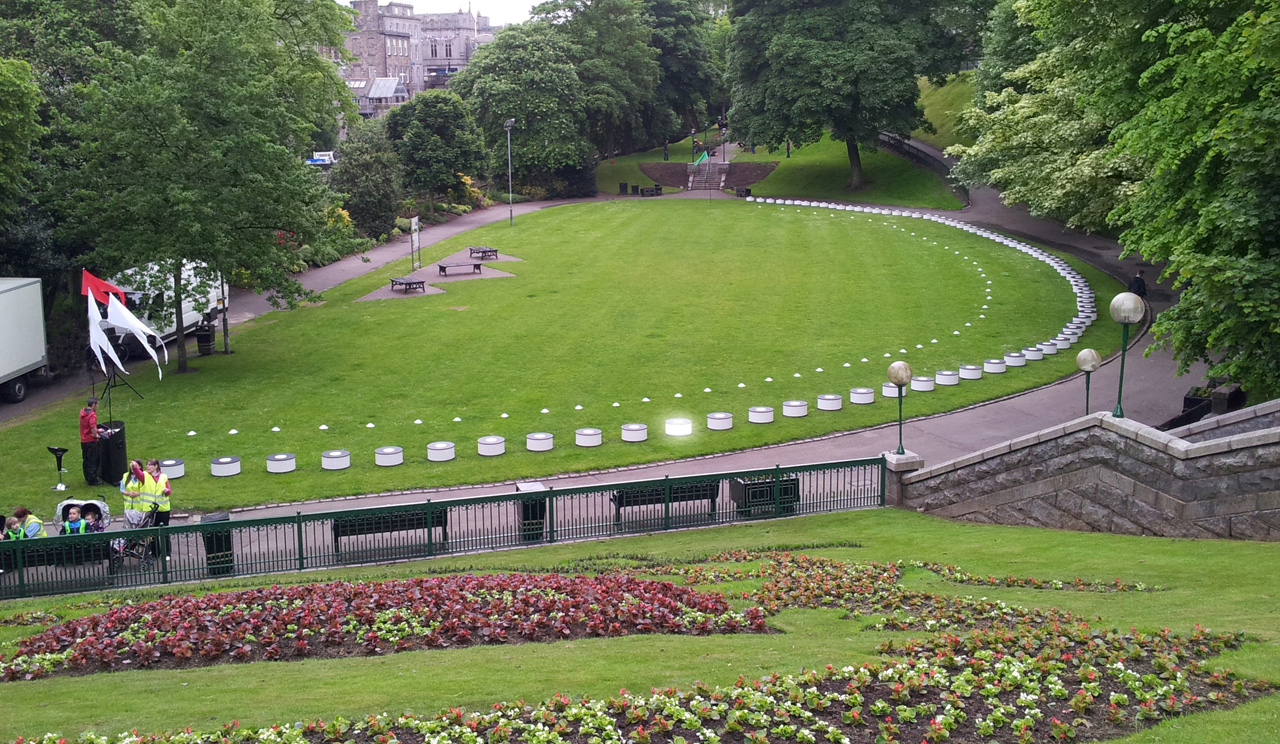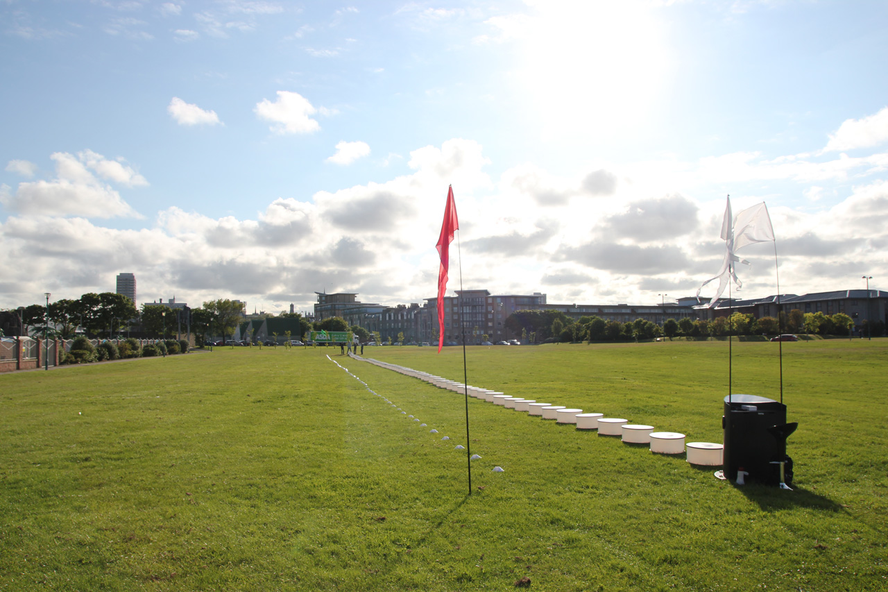 The installation travelled to various locations around Aberdeen for 4 days and was laid out in differing configurations; open public access sessions as well as organised groups at schools and sports centres. Runners were timed by sports students from the local college.