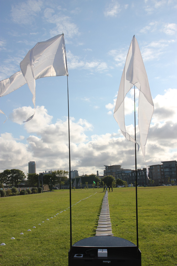 Sound for the work was created by commissioned artists working with local communities The installation was cycle powered – run on a 12volt system powered by members of the public.