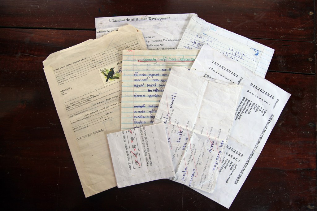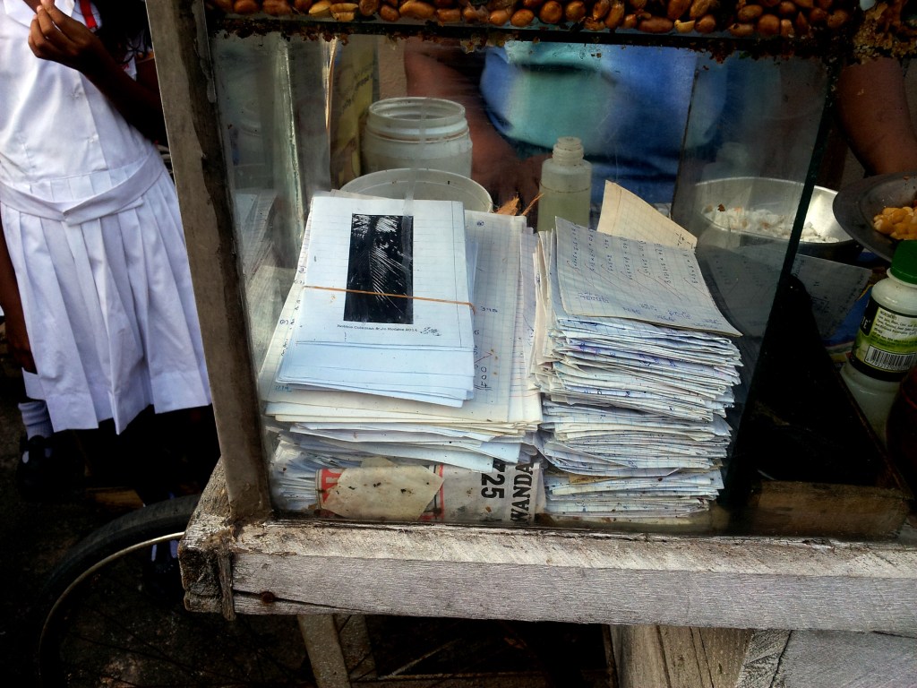 Observing day to day life in Hikkadua, we became fascinated with the bags that the street food vendors use. These are home made, usually out of old children’s schoolwork or office paper waste. You can be standing on the corner having a snack and reading some child’s attempts at maths or looking through someones office records. Our favourite was a list of spare parts for a Sri Lankan military jet.