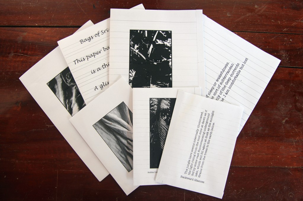 This led us into developing a series of our own designs including images and writing reflecting our time in Sri Lanka which we made into bags to give to street vendors to use. These became part of a new ephemeral communication system as we made an extended intervention, inserting the bags into the food system as we travelled around Sri Lanka. The text pieces explored our response to the surroundings and the climate and were designed to be small provocations dropped into the street life in the towns and cities. Ideas ranged from the dreams of lost cosmonauts to swimmers in underground oceans, All explored the feeling we had that there was more than one way that we were ‘present’ in this place.