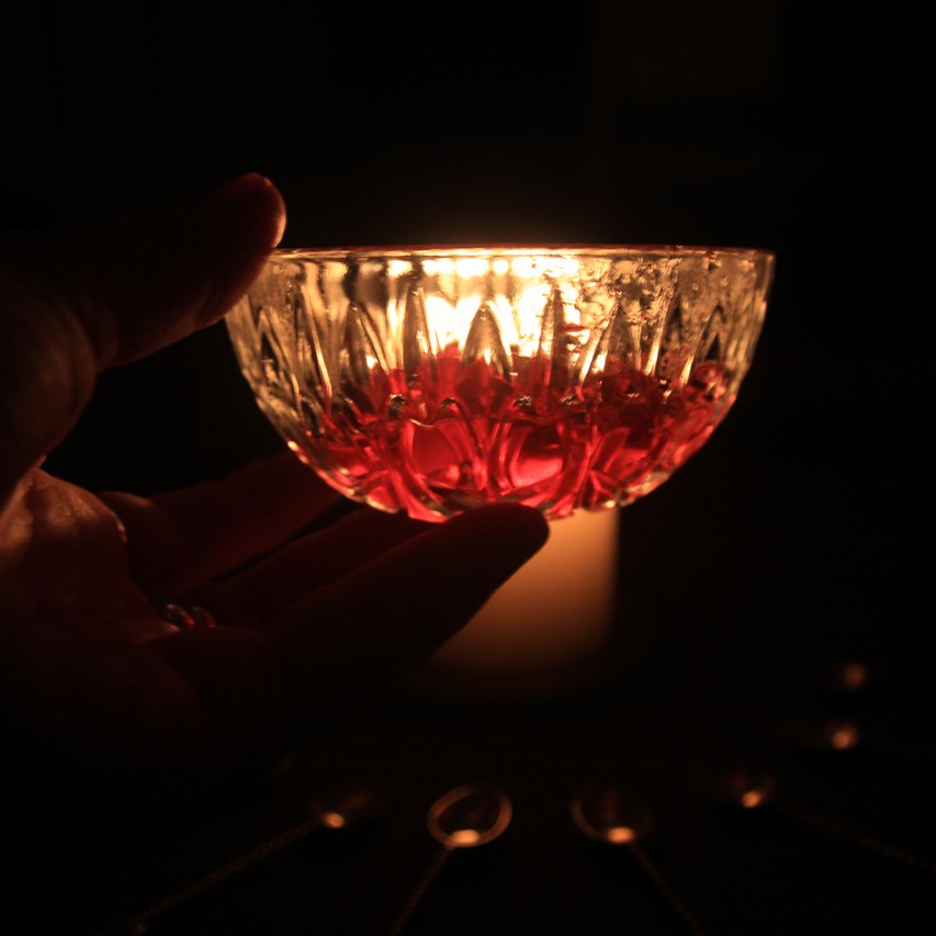 The candle is blown out and the rowan jelly is tasted by all participants in the dark. We move outside, each participant is given a torch , the light covered with a red gel.