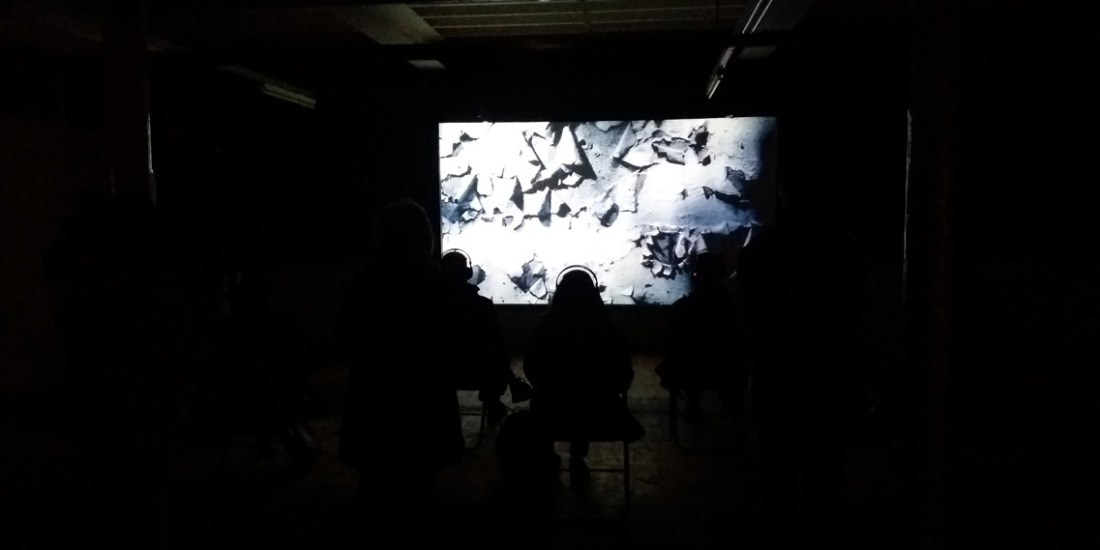 Screened in coal bunker at The Old Schoolhouse, Allenheads 2016. Above So Below, a weekend of events, exhibitions and installations at Allenheads, Northumberland. http://www.acart.org.uk/AASB-brochure.pdf