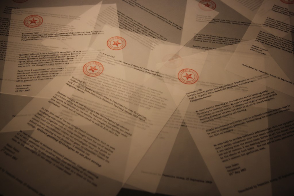 OUTSTATION #1 : A participatory event held between sunset and nightfall on the summer solstice 2018. Coleman and Hodges imagined an alternative history of the Soviet Space Program using the well-established Soviet technique of rewriting history to suit prevailing narratives. A fictional department was inserted into The Yuri A. Gagarin State Scientific Research-and-Testing Cosmonaut Training Center in Star City near Moscow during the early years of the first Space Programme. From 1962 – 1967, led by the enigmatic Dr Gregor Kormarov, The Department of Deep Navigation researched the psychological aspects of space flight. From novel forms of navigation and experiments with theta brainwaves to the analysis of Cosmonauts dreams, the department explored the internal journeys that Cosmonauts were making and looked for the deeper drives beneath the human need to explore beyond the horizon.There was extensive experimentation and research into altered states of consciousness and physical and philosophical exploration into the nature of time and space and the Jungian concept of the Collective Unconscious.