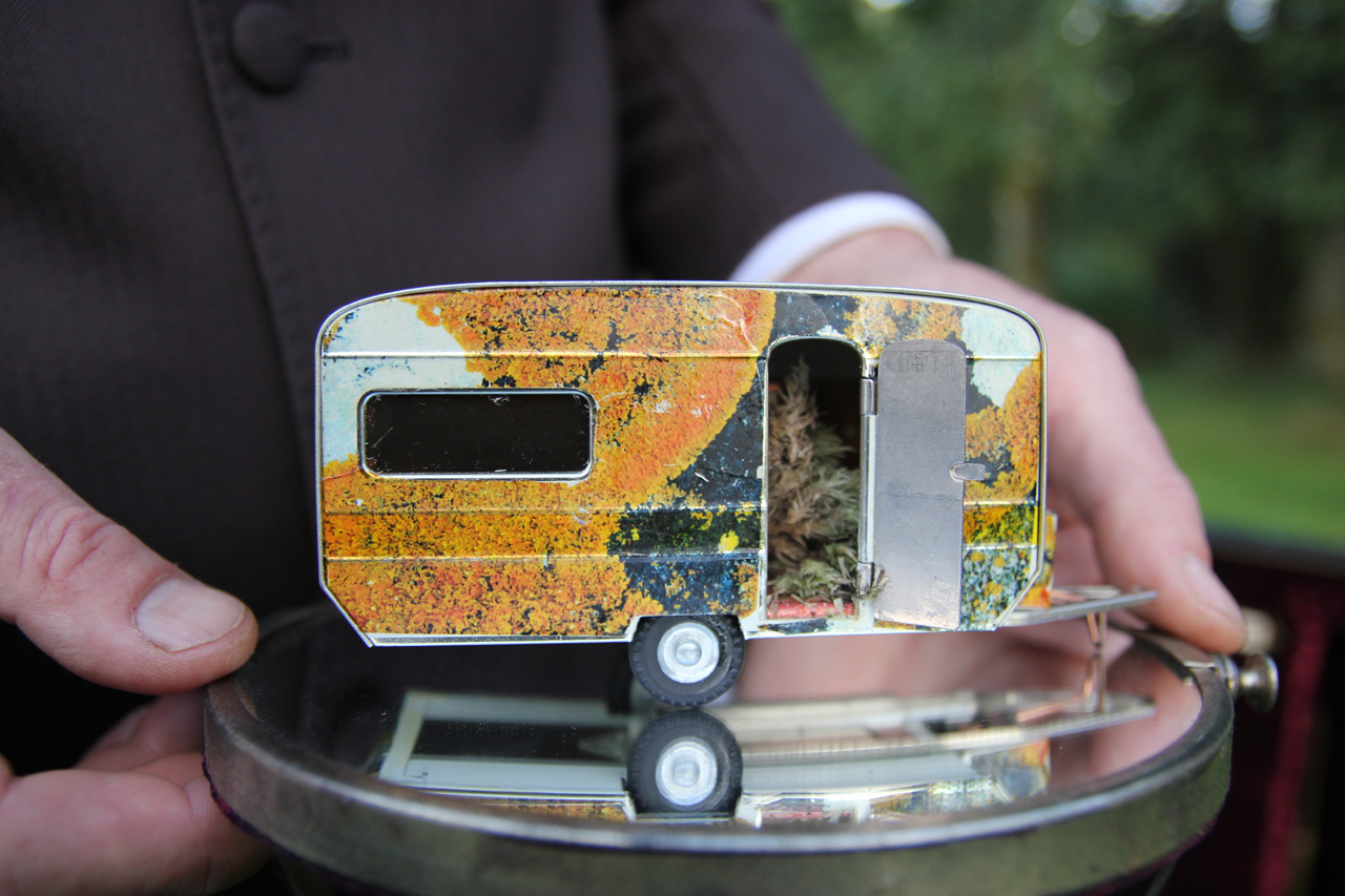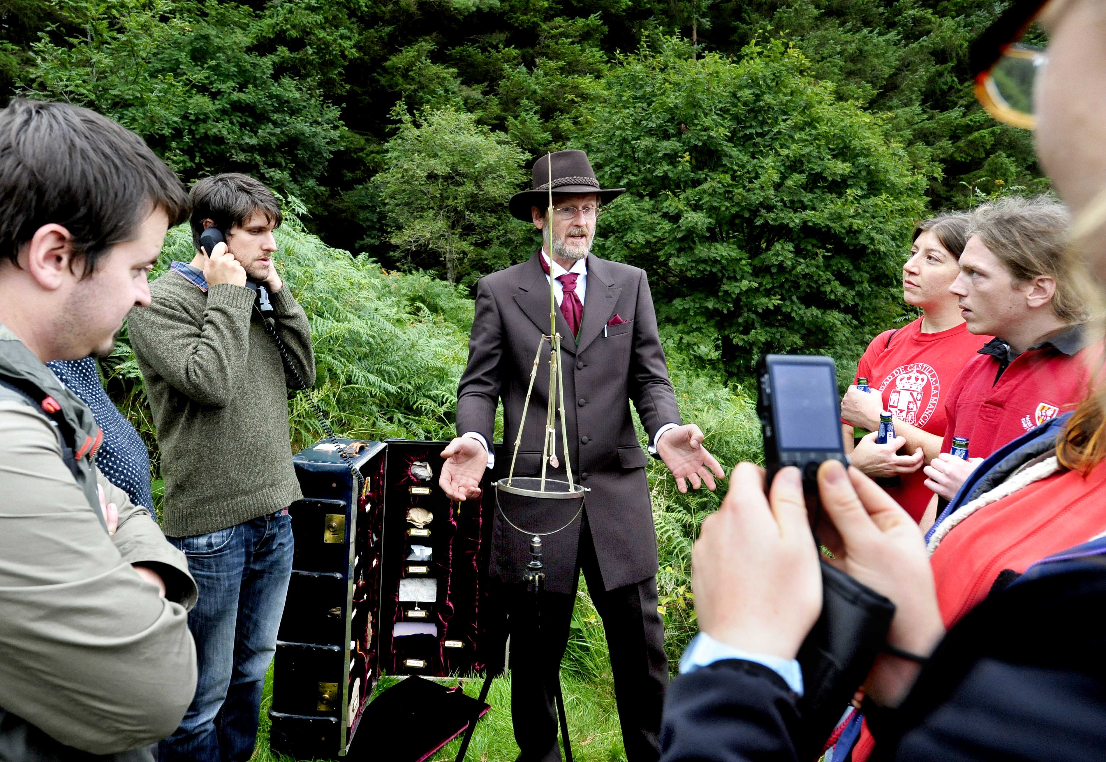 The Archivist was part installation, part performance that explored, expanded and illuminated some of the ideas, proposals and visions submitted to the Environmental Art Festival Scotland 2015. The Archivist toured the region for the 4 days of the festival, with a trunk containing representations of 25 ideas. At each location The Archivist engaged audiences in discussions about art and environment through the presentation of each object.
