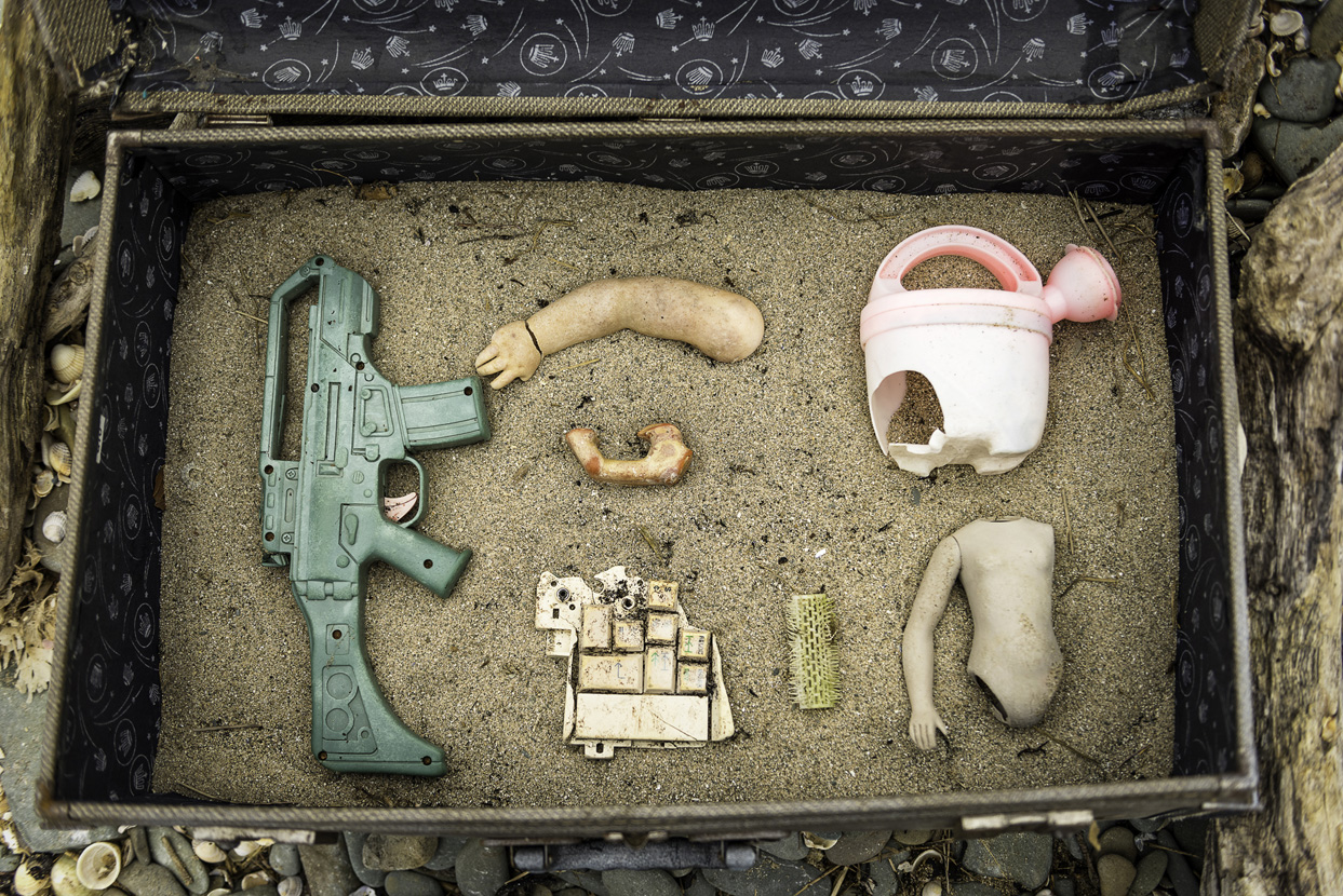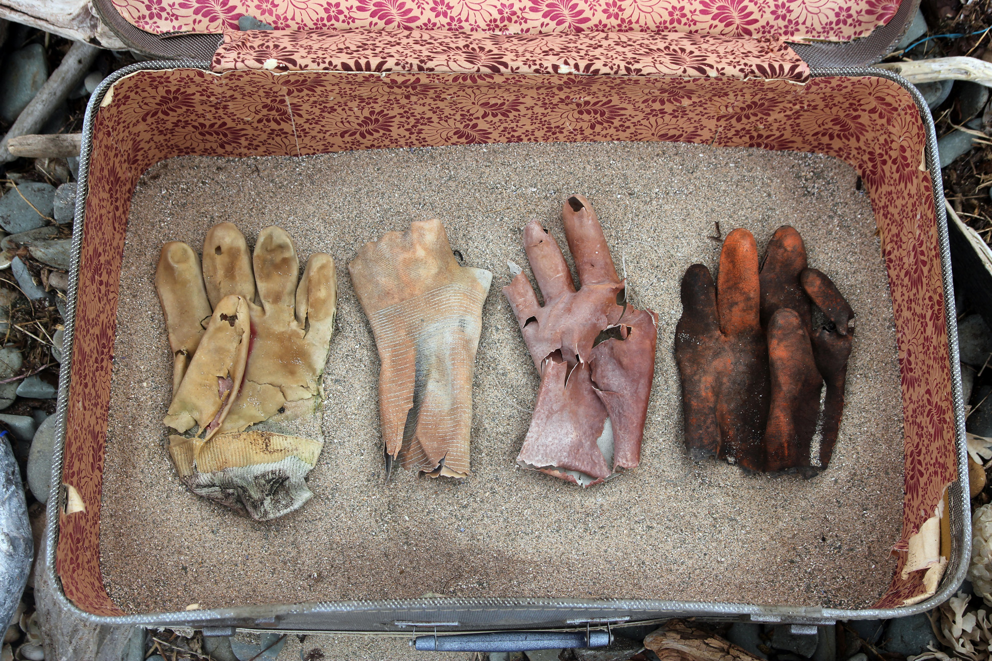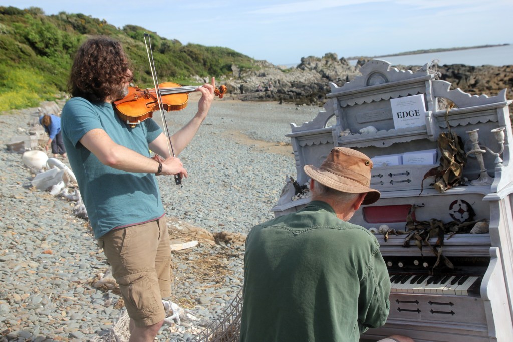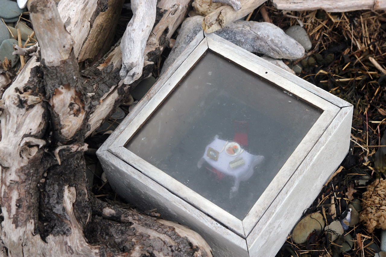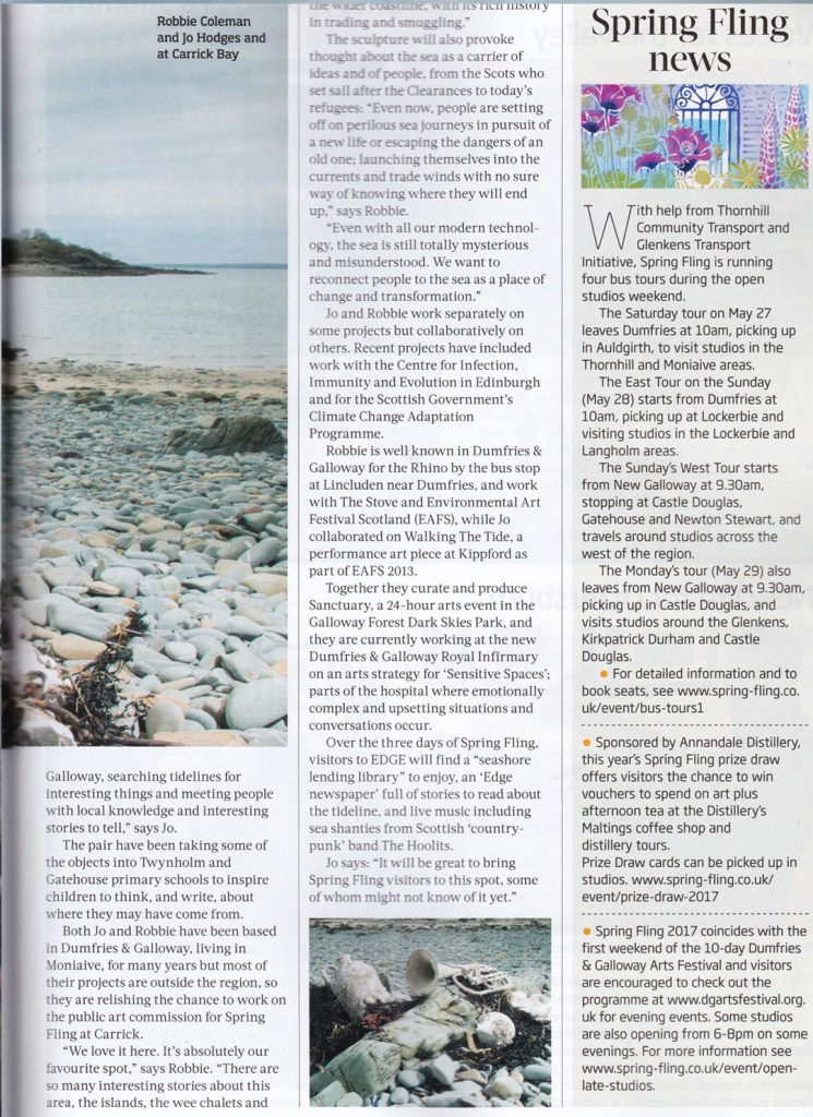 EDGE was a ghost tide line that followed and entwined with the existing one at Carrick Foreshore, formed using detritus collected along the coast together with curious objects and artefacts large and small, given to, created or found by the artists. These clusters of objects formed fragments of mysterious narratives and forgotten stories, some real, some imagined, some playful, others full of sadness and loss. The stories explored the nature of the link between this land and distant places and became part of the ancient tidal conversion between the sea and the shore.