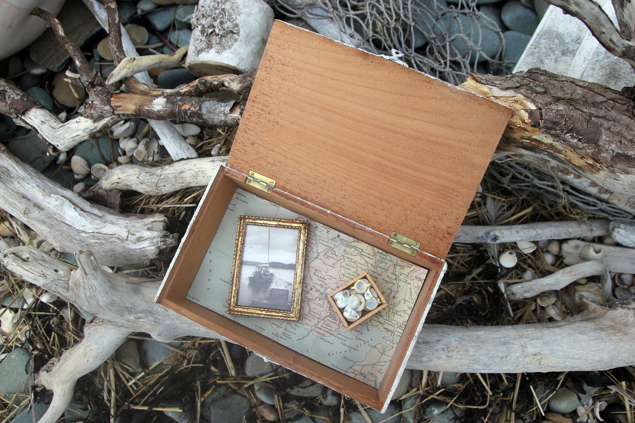 Over the three days of Spring Fling, visitors were able to explore the 150m installation at their own pace, opening and revealing the contents of the many boxes, tins and suitcases within the work. At scheduled moments old radio’s within the installation played songs linked to the sea.