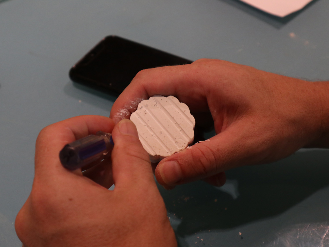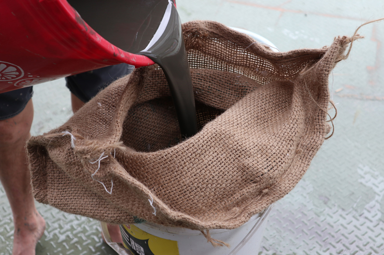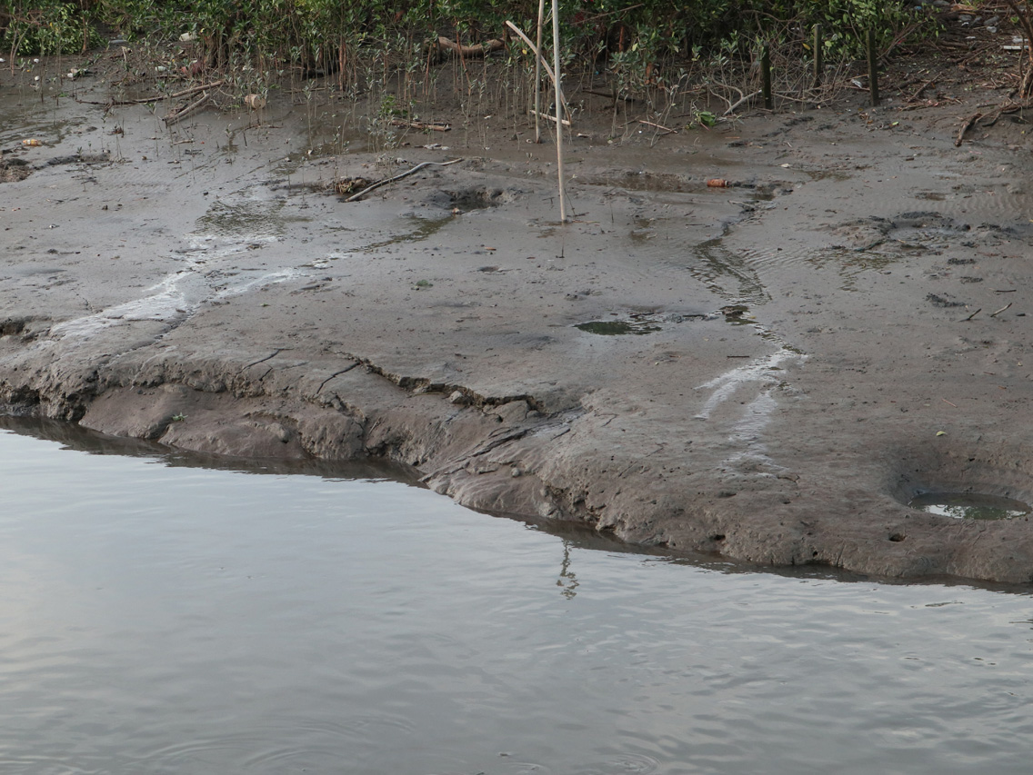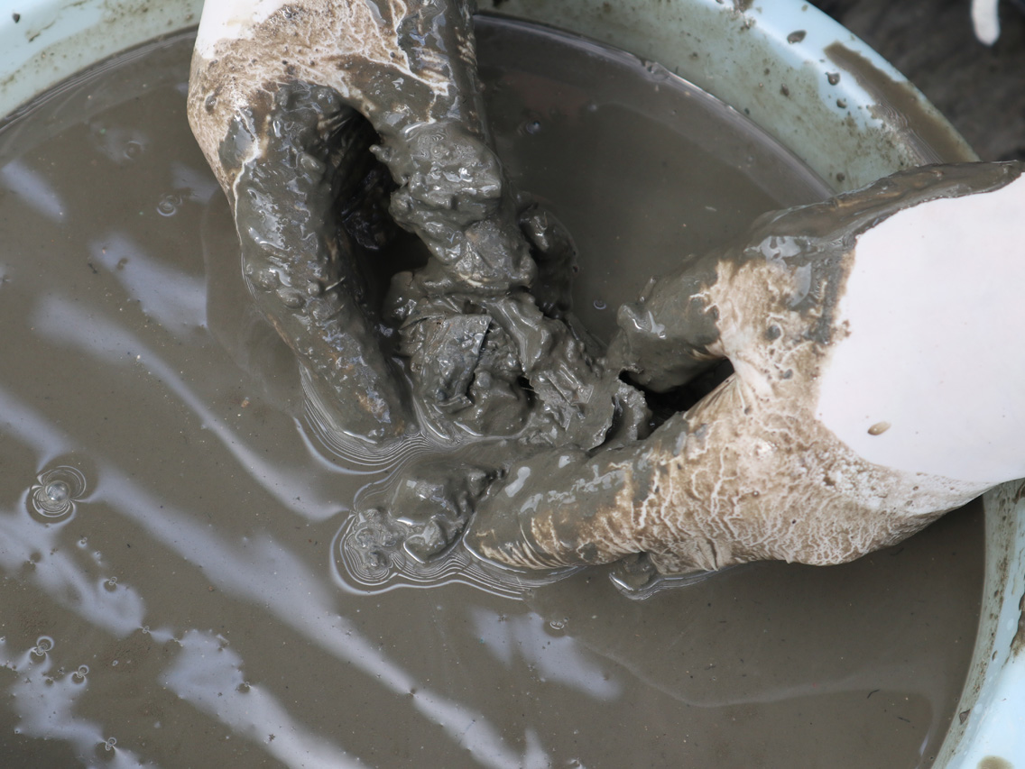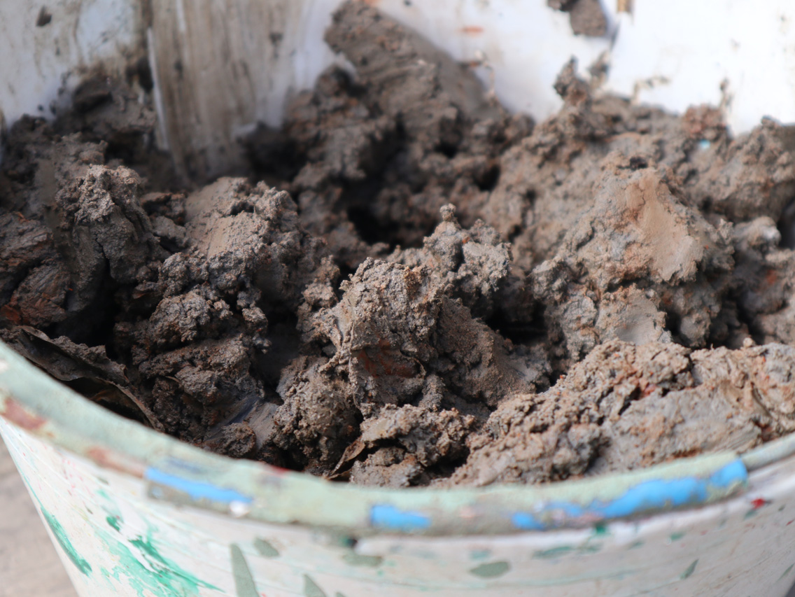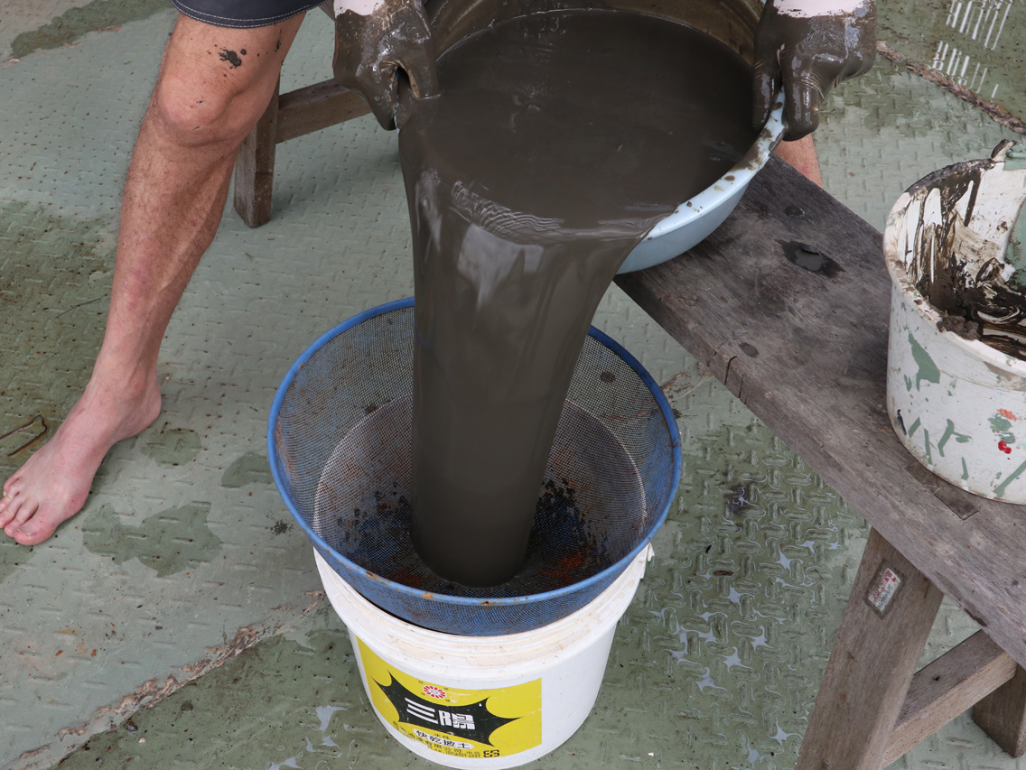 Process: We were interested in the particles of material that the creek collects and carries as it passes through Zhuwei and deposits as silt at its mouth where it flows into the Tamsui river. We collected this silt and passed it through a series of improvised filters until we had a fine clay.