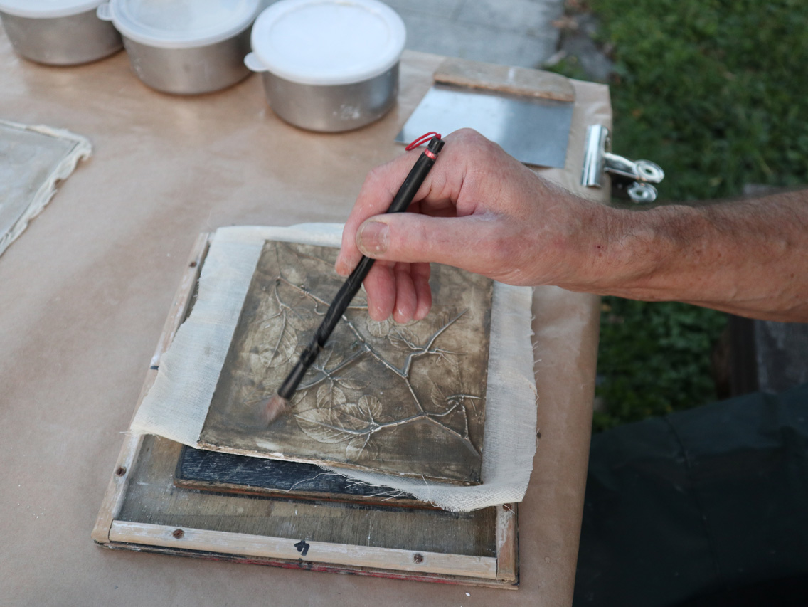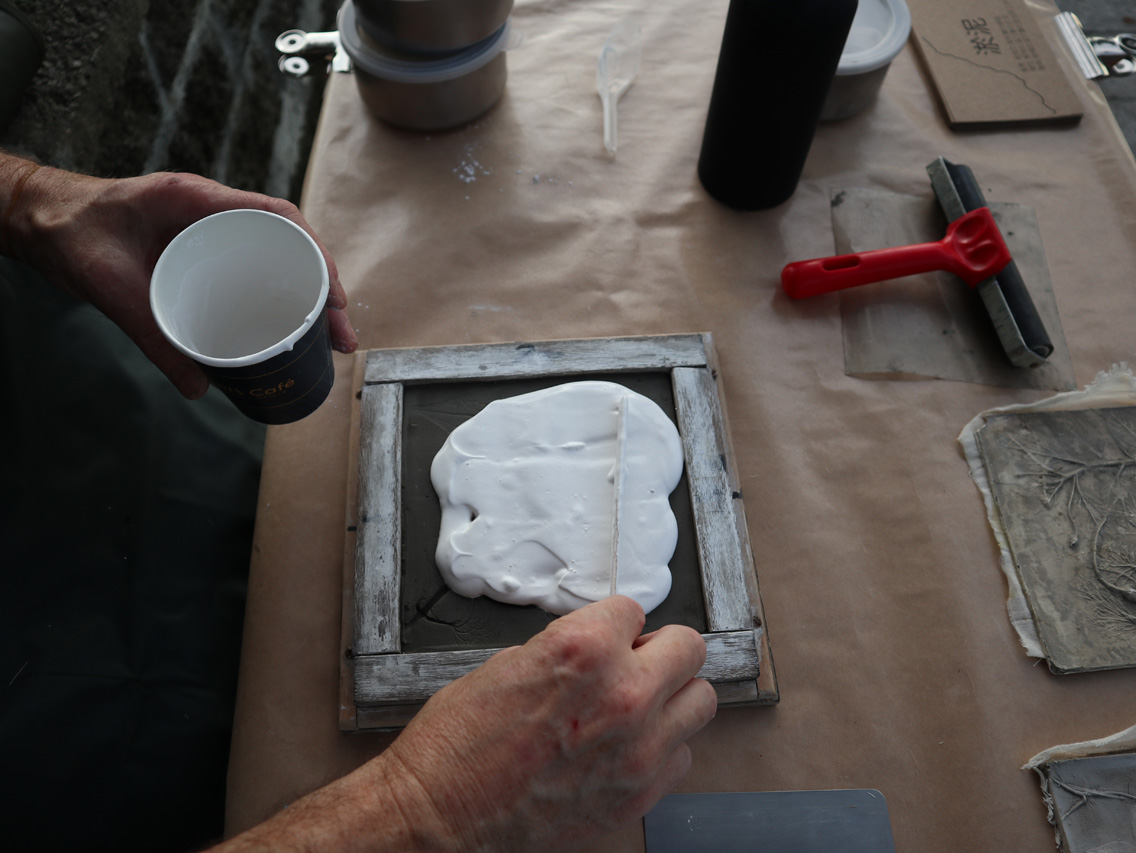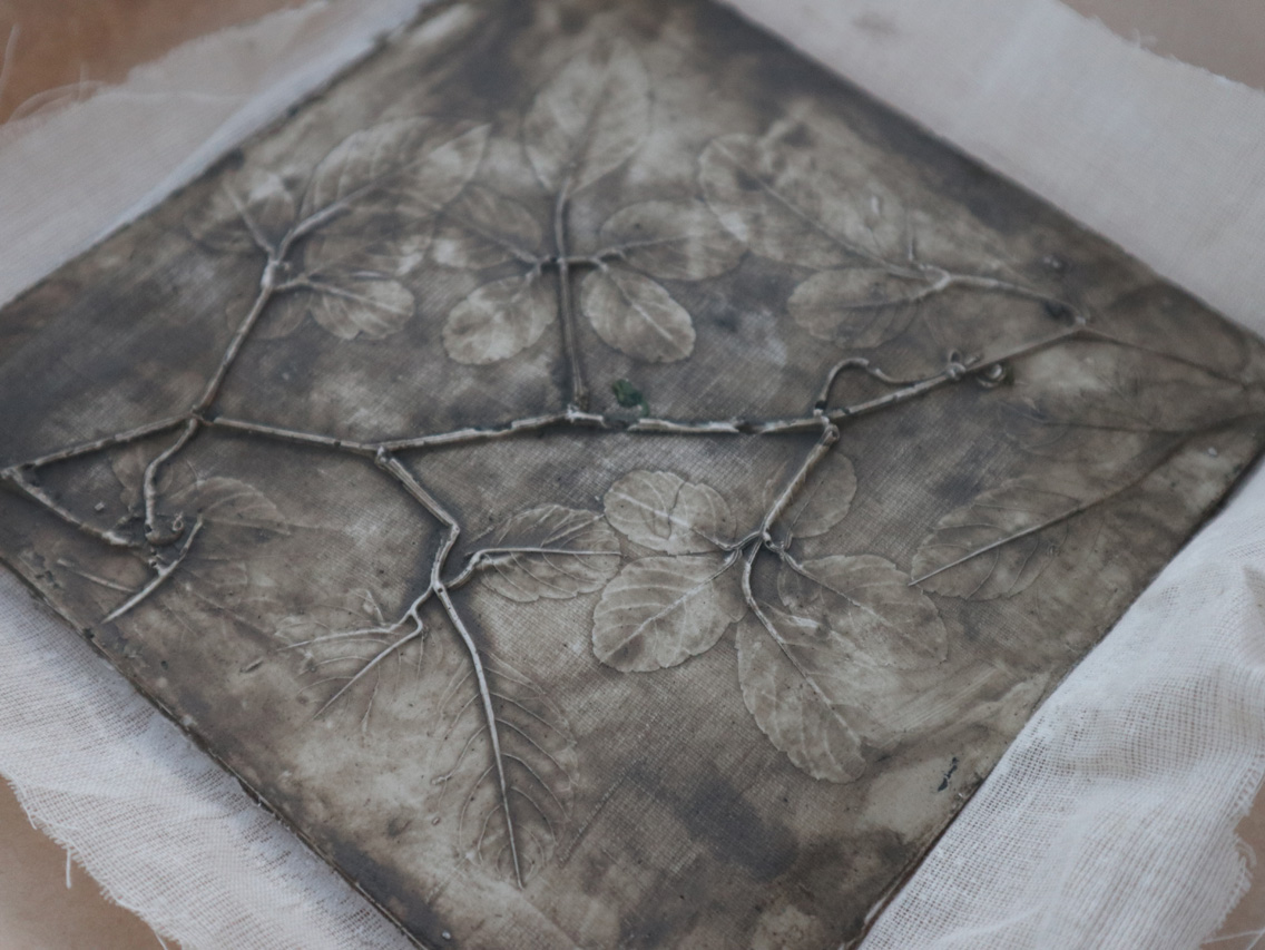 We created a process that used the clay as a material in which to made impressions of botanical samples and then made casts of the impressions to form tiles. We created a mobile ‘SILT Field Laboratory’ and hiked along the creek collecting plants and carrying out public castings at various locations. The tiles captured moments in time and place and we gifted each one to people living and working by the water. These casting sites became places of conversation and exchange, people often returning the following day bringing gifts of fruit and food.