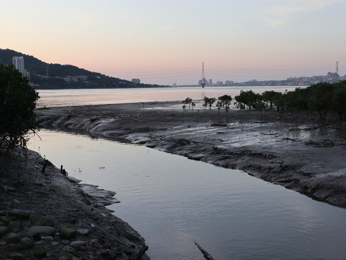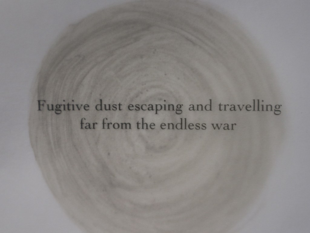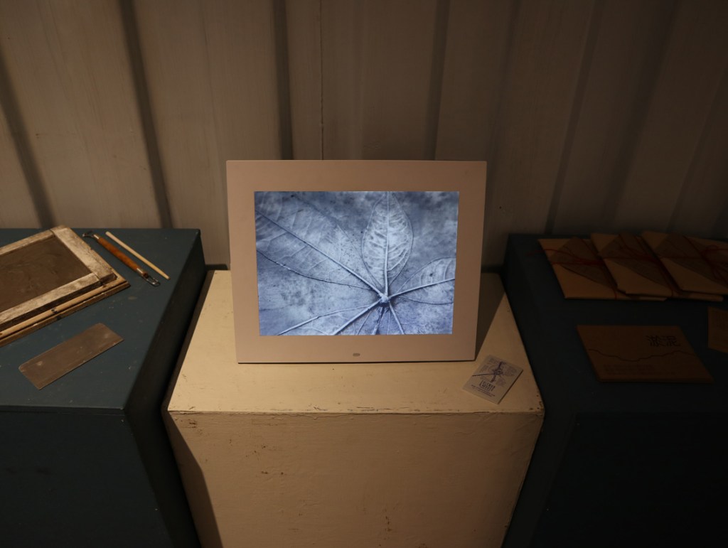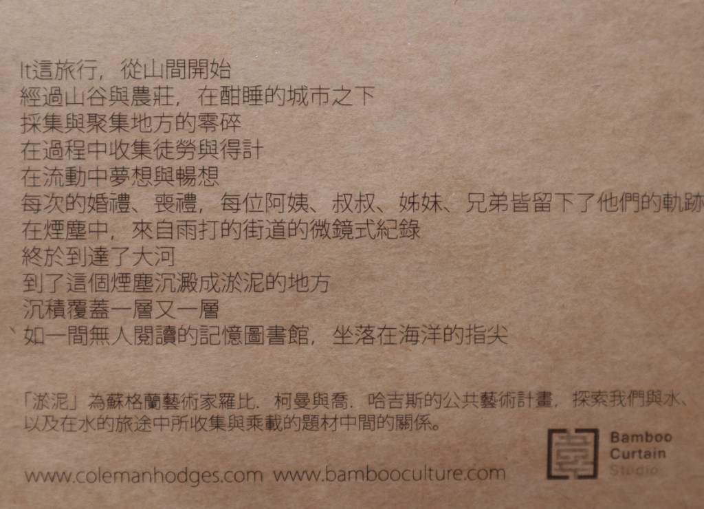 Dust is composed of minute particles of human and more than human activity and as such is a carrier of information and stories. The Plum Tree Creek collects dust as it flows from its source through Zhuwei to settle as silt at the Tamsui River. In this work, silt from the mouth of the Plum Tree Creek was collected each day over a month’s lunar cycle and applied to card in varying degrees of dilution. Text exploring different elements of dust was applied over the silt. The text explores both the nature of dust and the stories it carries. Some of the stories are fictional and others are based on the artist’s observations as they hiked the Plum Tree Creek.