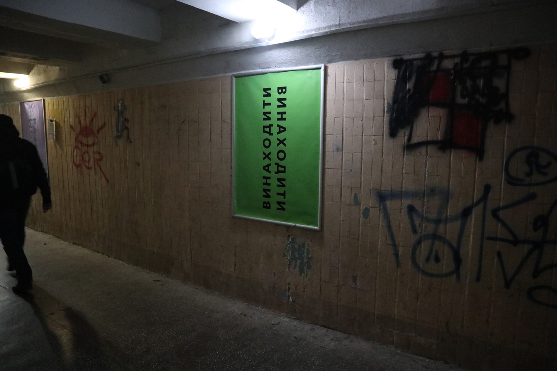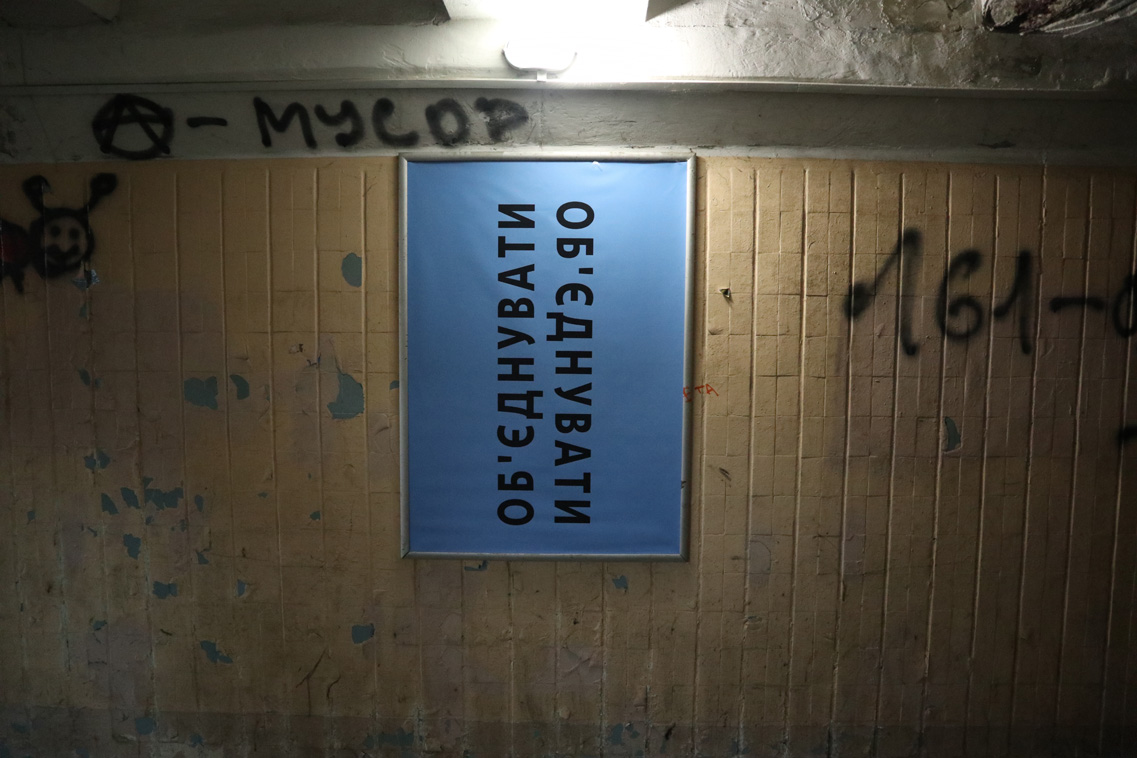 Disused poster sites in the underpass were used as sites for artworks and each day for 3 days a different set of posters was installed. The posters explored new lines of connection. Connection through place and time and between the city and Pidzamche, connection between people and the possibility of new connections through creative change.