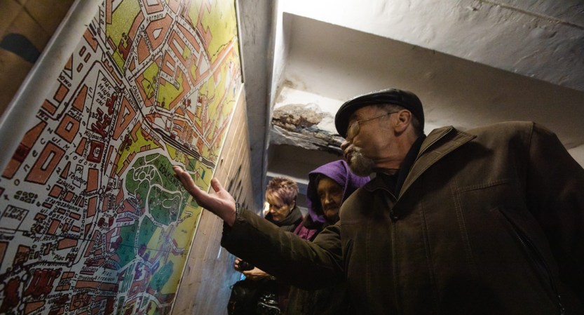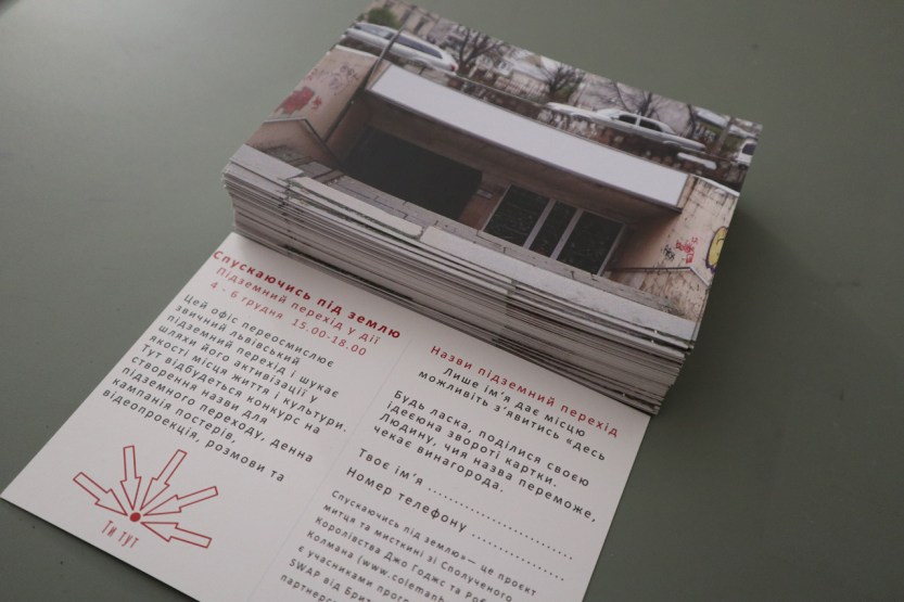 The city centre is divided from Pidzamche by a railway line. A neglected underpass that runs underneath the railway line connects the two areas. There are small shop units in the underpass but most of them are disused. We hired one of these shop units and created ‘Going Underground: Actions in the Underpass’. This project activated and reimagined the underpass as part of a physical and cultural journey. The project created new ways of involving the local community, students and decision makers in conversations about creative regeneration of the area.
