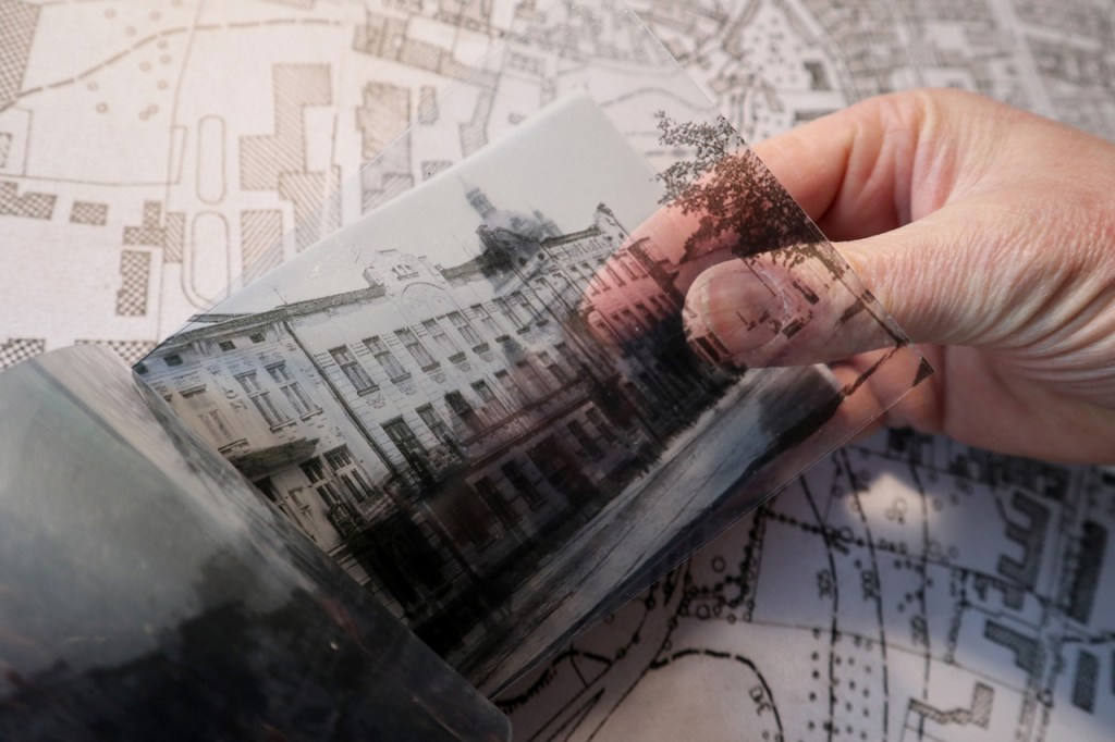 The second book uses images from the Centre for Urban History to connect people to the past of Bohdana Khmel’nyts’koho St. The pages are translucent and can be used to hold up against the current buildings while in the street to look through and see the past. The book can be used from the Underpass to the Jam Factory, or by turning it over, from the Jam Factory to the Underpass.