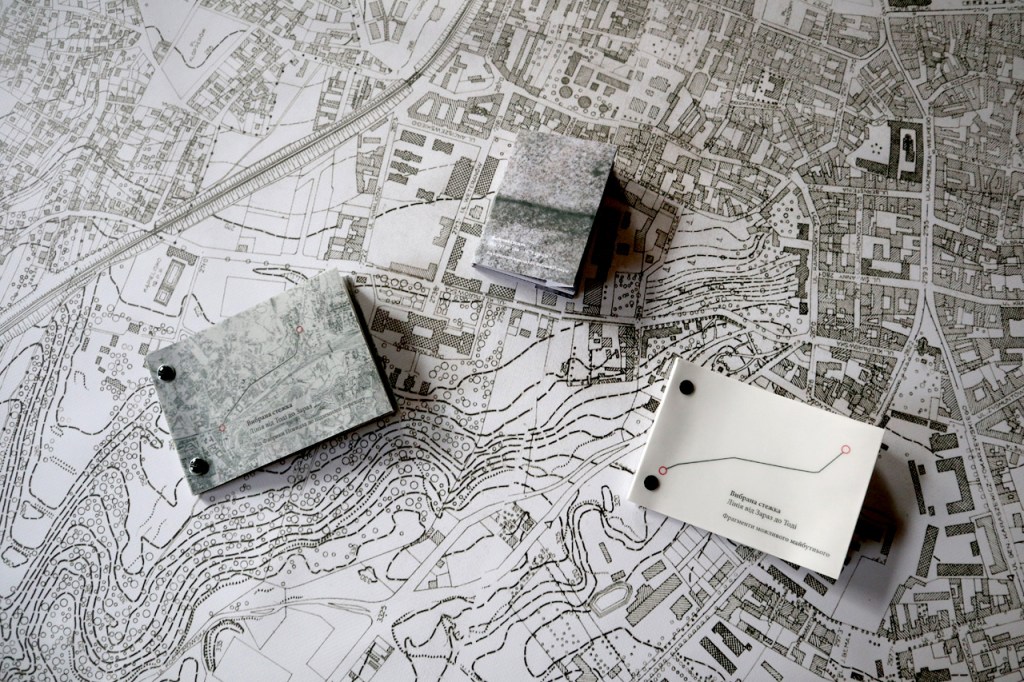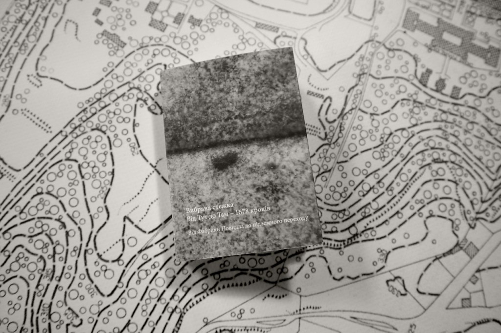 The first book explores details of the journey through macro photographs of lines and cracks in the buildings and walls along the walk to the Jam Factory. Each line is given a number which is the number of steps from either the Underpass or the Jam Factory to where it can be found. People finding the lines will be looking closely at details of the journey. Through the use of ‘lines’, we are exploring the idea of creating a new ‘desire line’ from Lviv centre to The Jam Factory.