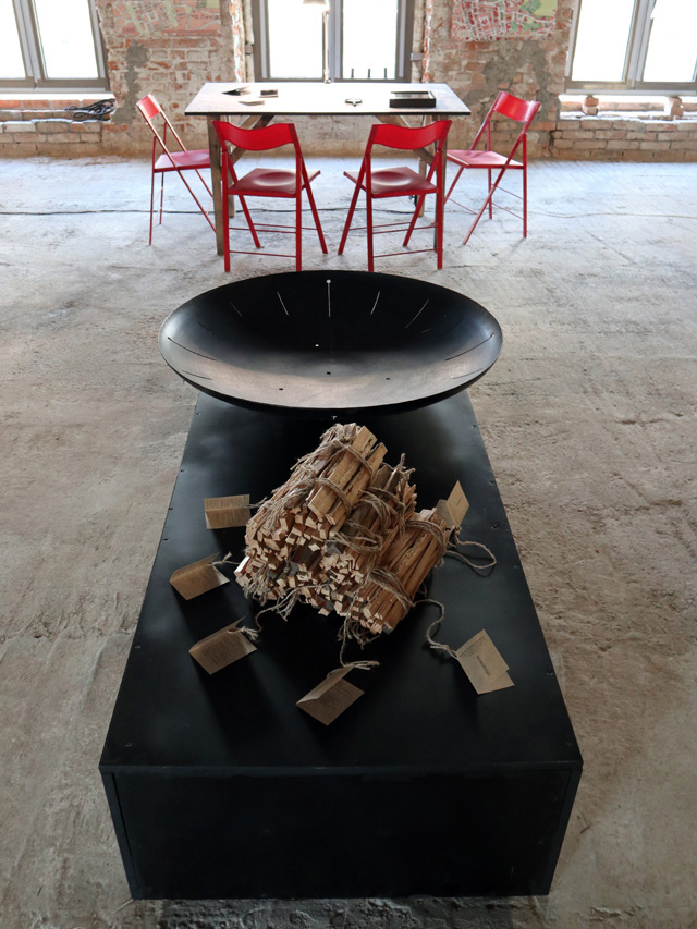 Above: The Fire Bowl and bundles of kindling with instructions for curated conversations at Dnipro Contemporary Culture Centre March 2020 (British Council SWAP Programme)