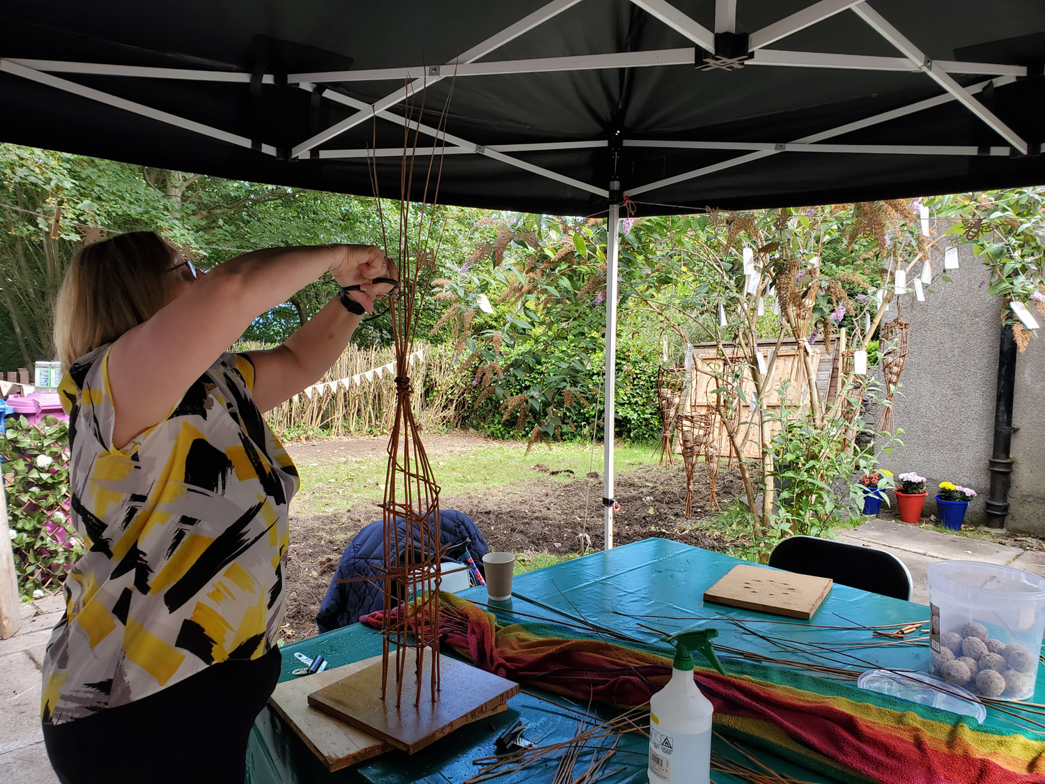As artists we felt initially that we were only providing simple ‘workshops’, but soon realised that how we had designed the project meant that the activities were only a small part of the project. We saw people engage with the garden, with meeting new people, with having open conversations and much more. The garden became a convivial space of creative activity and we saw a huge amount of personal engagement, enjoyment and people moving out of comfort zones by trying new things with our support.
