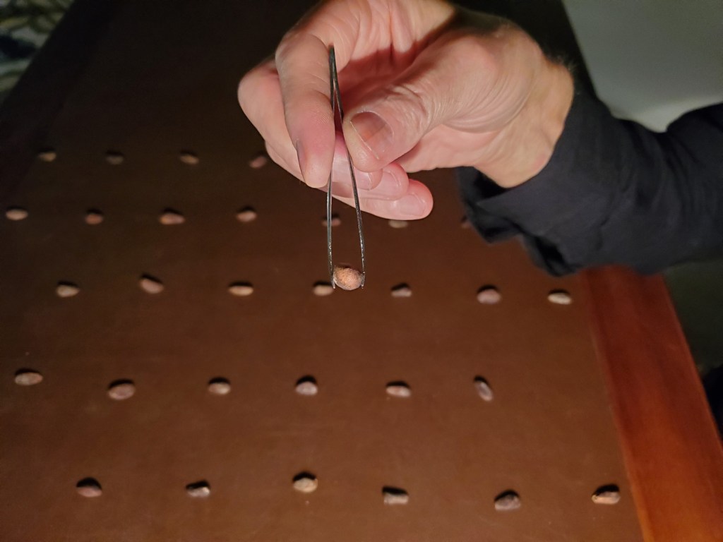 The participant was motioned to make their way to the table through the pine cones, following any course that they pleased. Once at the table ‘The Establishment’ considered ‘The Disperser’, looked at the seeds and finally choose a seed which was handed to ‘The Disperser’. They were then motioned to leave the room with the seed.