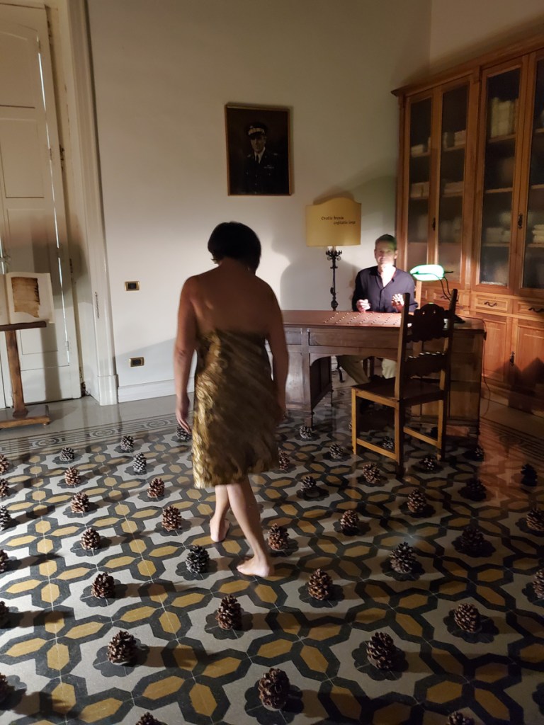 Our aim for the residency was to respond to environment and place by using only that which we found around us. Our residency base was Villa Santa Maria, a large house built in 1845. The house and garden was shaded by a number of very tall Stone Pine trees and we considered how to develop a performance working ‘with’ the trees.
