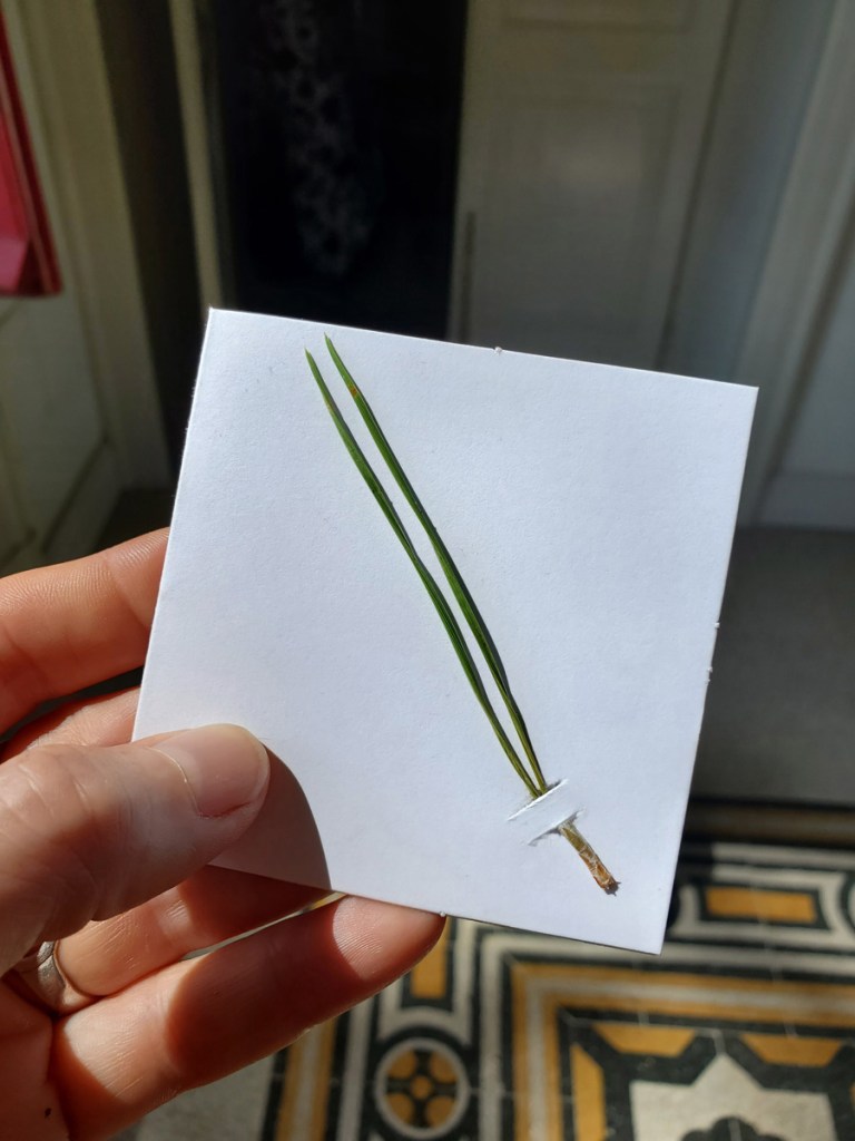 The performance took place on the evening of 27th July. The audience had arrived at the house and were enjoying drinks and the sunset while waiting for a timed performance from other artists on the residency. People were chosen at random to take part in ‘Dispersal’. A participant (‘The Disperser’) was approached and handed an envelope. Inside was a card that read; “You are requested to take part in Dispersal: The Establishment of a Forest”.