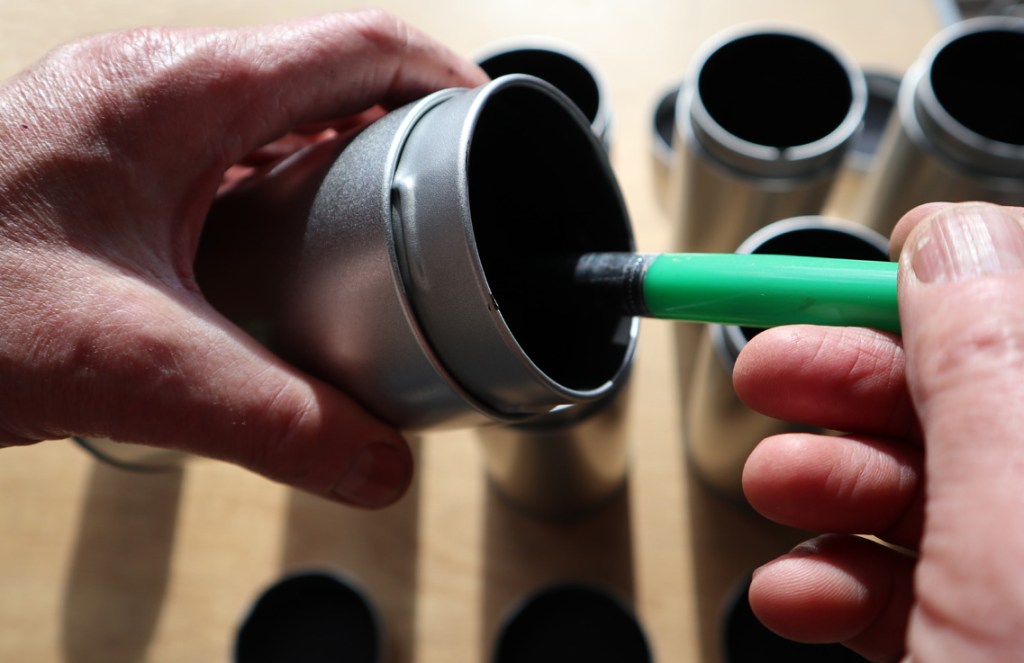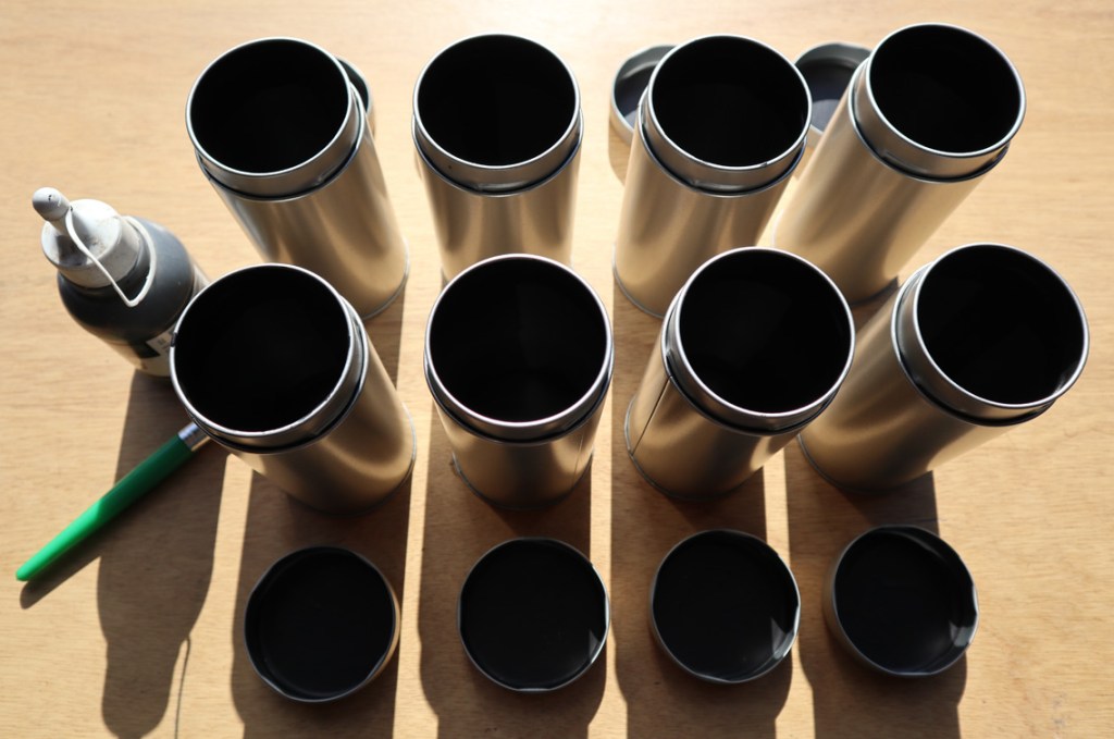 Above images: Starting the process of making the pin hole cameras for the project. We painted the inside black to seal them and reduce reflection. One piece of photographic paper will be placed in each and then the top sealed tight. Tape will be stuck over the pin hole to stop light entering until it is attached to its position.
