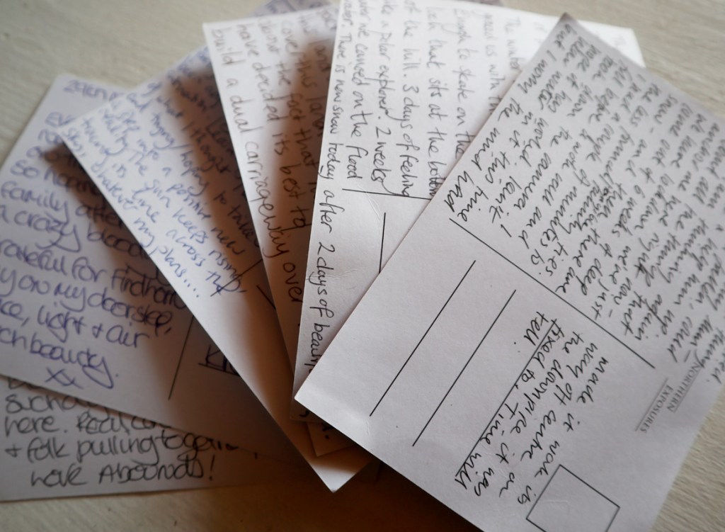 More government restrictions have meant the closure of pubs and restaurants across the central belt, the advice is to avoid travel with a second wave of covid growing more likely. We are able to travel for work and so we are back in Forres and are making packs for participants that will include a pin hole camera tin, instructions and two silver envelopes. The envelopes will each contain a postcard that we will ask people to fill in on the day they put the camera up and on the day that they take it down. We’d like people to write something about how they are feeling that day, maybe something about the view the camera is pointed at, or anything that they want to reflect on or ‘capture’.