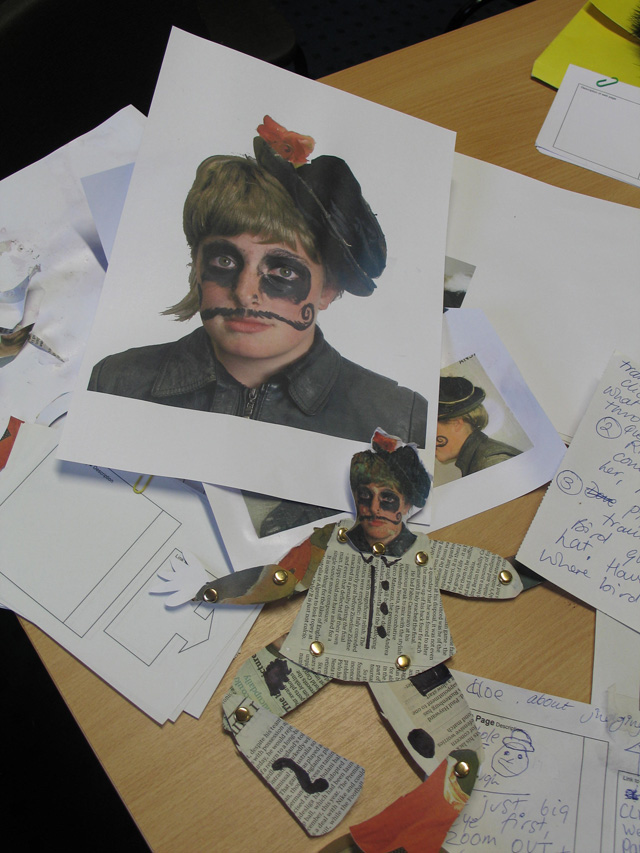 The creative team worked with Young People through a programme of workshops to create both the content and the page linking mechanisms. A variety of disciplines were used to enable each participant to create work for an individual series of pages using sound, short animations, scanned objects, collages, photos, drawn /painted artworks, lino cuts, written pieces, films and interactive questionnaires. A web designer then incorporated the work into the online space.