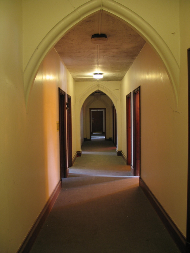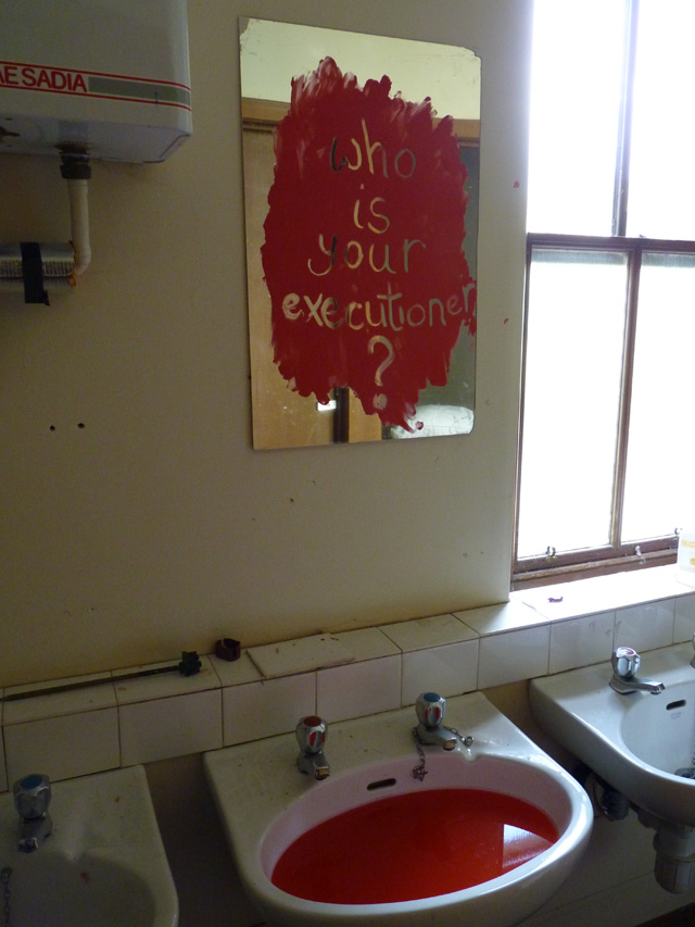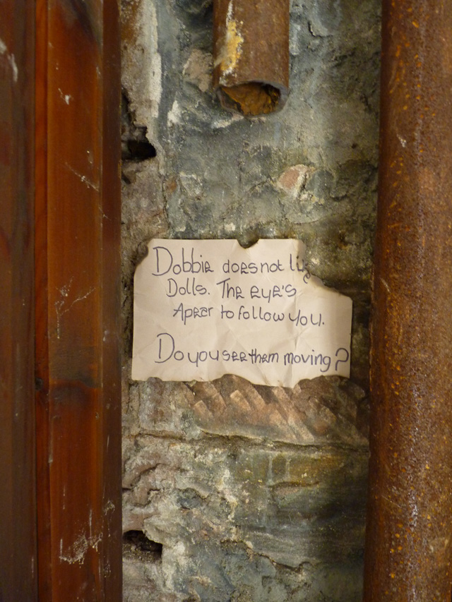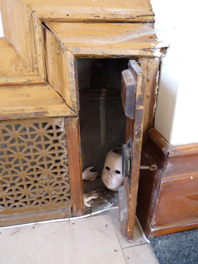 Below: The entrance into the convent. The audience explored the abandoned rooms where they discovered hidden spaces with elements from the animations, films and other artworks.